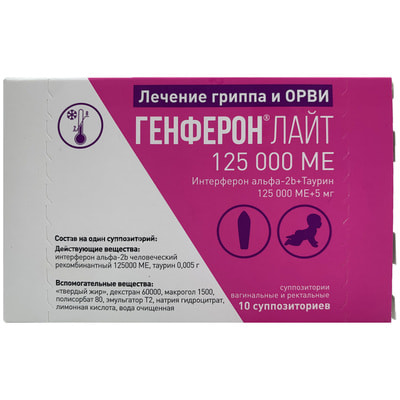 Инструкция для Генферон Лайт суппозитории вагинал./ректал. 125000 МЕ + 5 мг №10 (2 блистера х 5 суппозиториев)