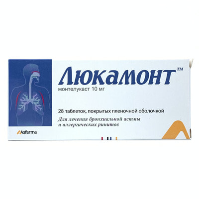 Lukamont (Lucamont) 10 mg plyonka bilan qoplangan planshetlar №28 (2 blister х 14 tabletka) ning asosiy faol moddasi Montelukast hisoblanadi.